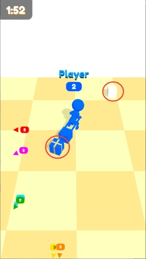 1. 通过移动角色拾取场景中的箱子来收集箱子扩张链条,角色身后会生成一条持续增长的链。收集的箱子数量越多,得分就越高,这十分考验收集效率。