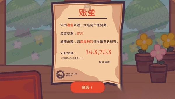 2、游戏开始前会有张账单告知玩家欠款总额;