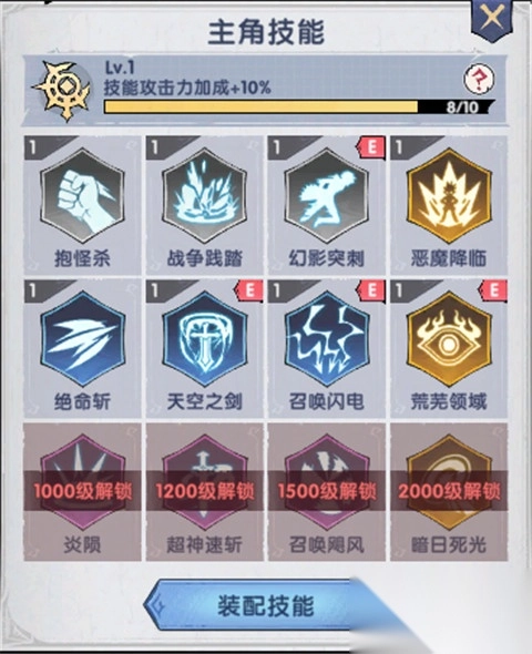 推图流(突破关卡为主)推荐技能:抱怪杀/天空之剑/恶魔降临/召唤闪电