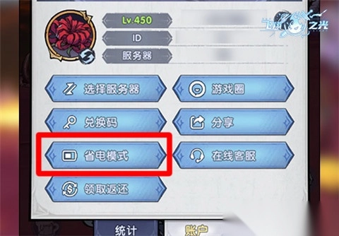设置方法,就是点击游戏左上角的头像,进入“玩家设置”画面,再点击右下角的“账户”彩蛋,即可手动开启省电模式啦!当然,在默认设置下,只要你在游戏里不操作一段时间,系统也会自动进入省电挂机模式,非常方便。