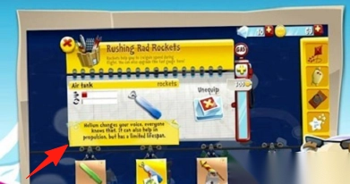 1. 进入工坊进行道具制作,挑选火箭雪橇等载具,收集空气罐金属这类材料,对引擎、机翼等部件进行修复与升级。