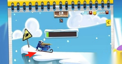 2. 在雪地竞速中操控载具,沿着赛道全力冲刺,小心避开诸如悬崖路牌这类障碍,不断积累氮气用于加速,从而赢取比赛奖励。