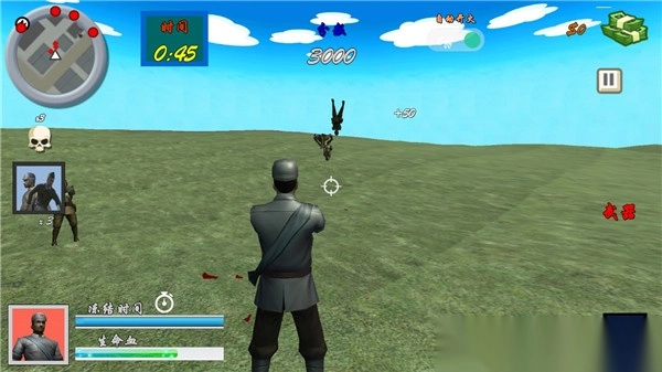 2、大批敌人如潮水般向我方发起猛烈攻击。好在我们早有埋伏,于道路旁的树林中悄悄埋伏了士兵。此刻,上级将上海滩的安危全系于你一身。勇士,出发吧!握紧手中的枪,把敌人统统狙杀。这可是一款超好玩的枪战游戏,记得要精准瞄准敌人的头部哦。