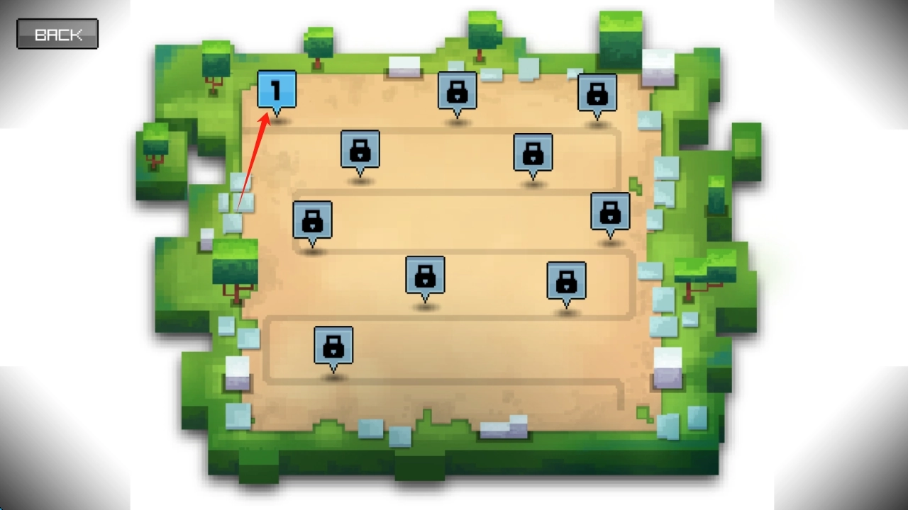2、关卡选择时,点击数字1,进入第一关,挑战初始关卡敌人与任务,点击选择任务关卡。