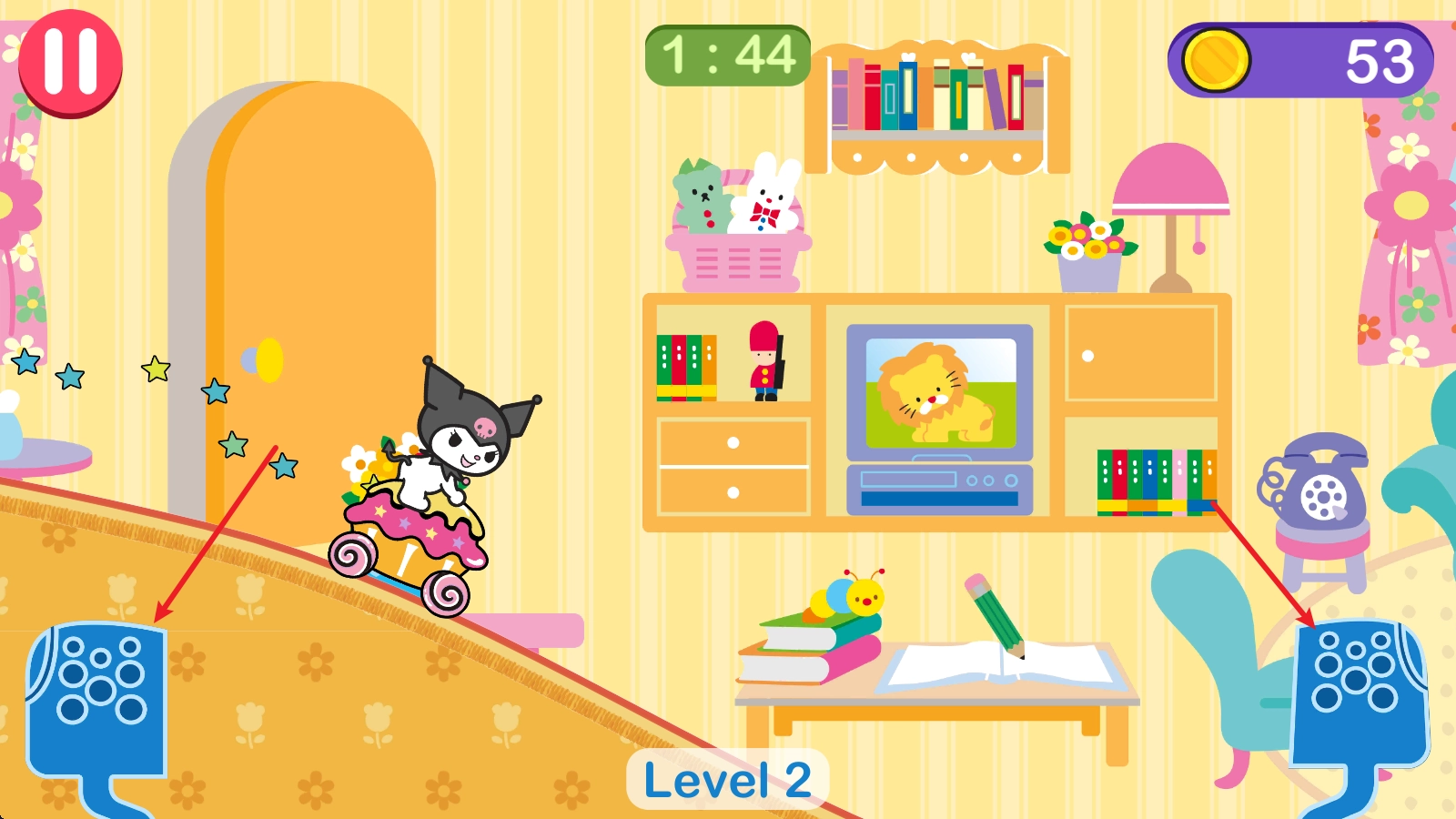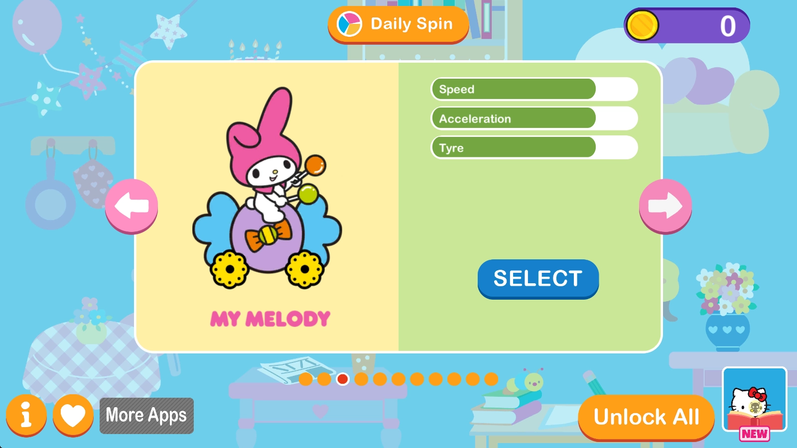 快来加入凯蒂猫及其可爱小伙伴们的又一场趣味赛车游戏,这次的赛场就在凯蒂猫的家中哦。这可是一款能逗趣幼儿,让他们绽放灿烂笑容的游戏,还有超多惊喜在等着他们呢。在这里,孩子们可以从可爱的赛车队伍以及那些热闹非凡的汽车中挑选自己心仪的。是选择站在羊角面包上的Kerokerokeroppi,趴在鳄鱼上的Bad Badtz - Maru,还是坐在鼓上的My Melody呢?这款游戏为孩子们带来别具一格的赛车体验,他们能从三丽鸥的众多角色里选出自己钟爱的卡哇伊角色,随即开启比赛。究竟谁会胜出呢?是驾驶赛车弓的Hello Kitty赢得最多星星,还是驾驶云车的LittleTwinStars获得最佳完赛时间?一切都取决于驾驶技巧哦——那么,咱们这就开始吧......准备,就绪,出发!