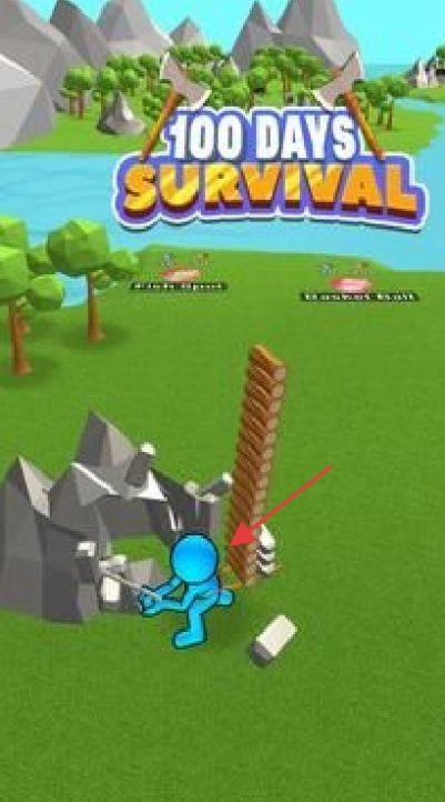 1、操控蓝色小人角色在开放场景中活动,砍伐树木获取木材,也可以在河流中捕鱼,收集各类生存所需的资源。