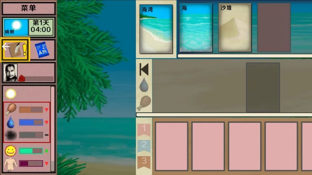 2、平衡探索与制作:在分配卡牌使用次数时,要同步推进诸如“探索海湾”这类探索活动以及像“棕榈叶容器”这类工具的制作,防止出现资源断档的情况。