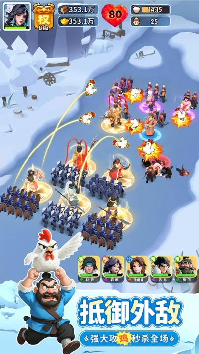 招募三国武将,诸葛亮,赵云,吕布听您调遣,使用不同武将组合守卫城市。