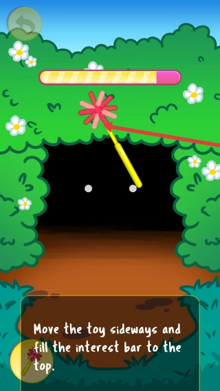 2、根据指示操控玩具在草丛上左右移动,将上方兴趣条填满,就可以完成当前的互动任务。