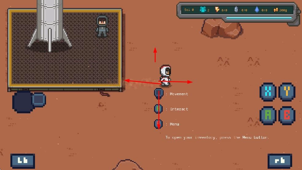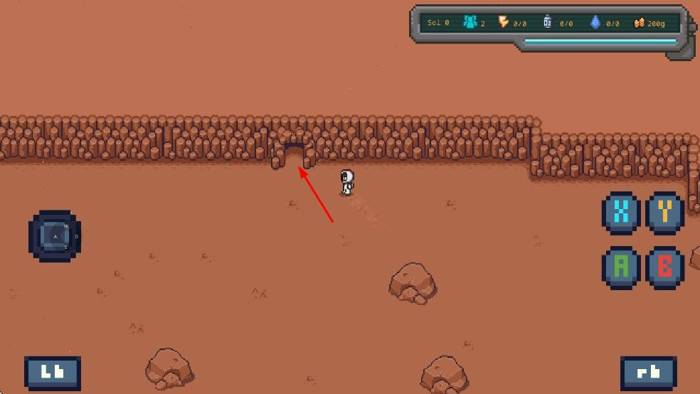 2. 踏入可探索区域,采集矿石、晶体之类的材料,并将其存入背包以管理资源。