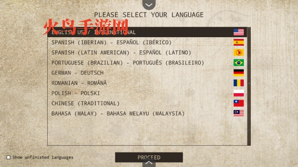1. 接着打开游戏,在此处选择语言。