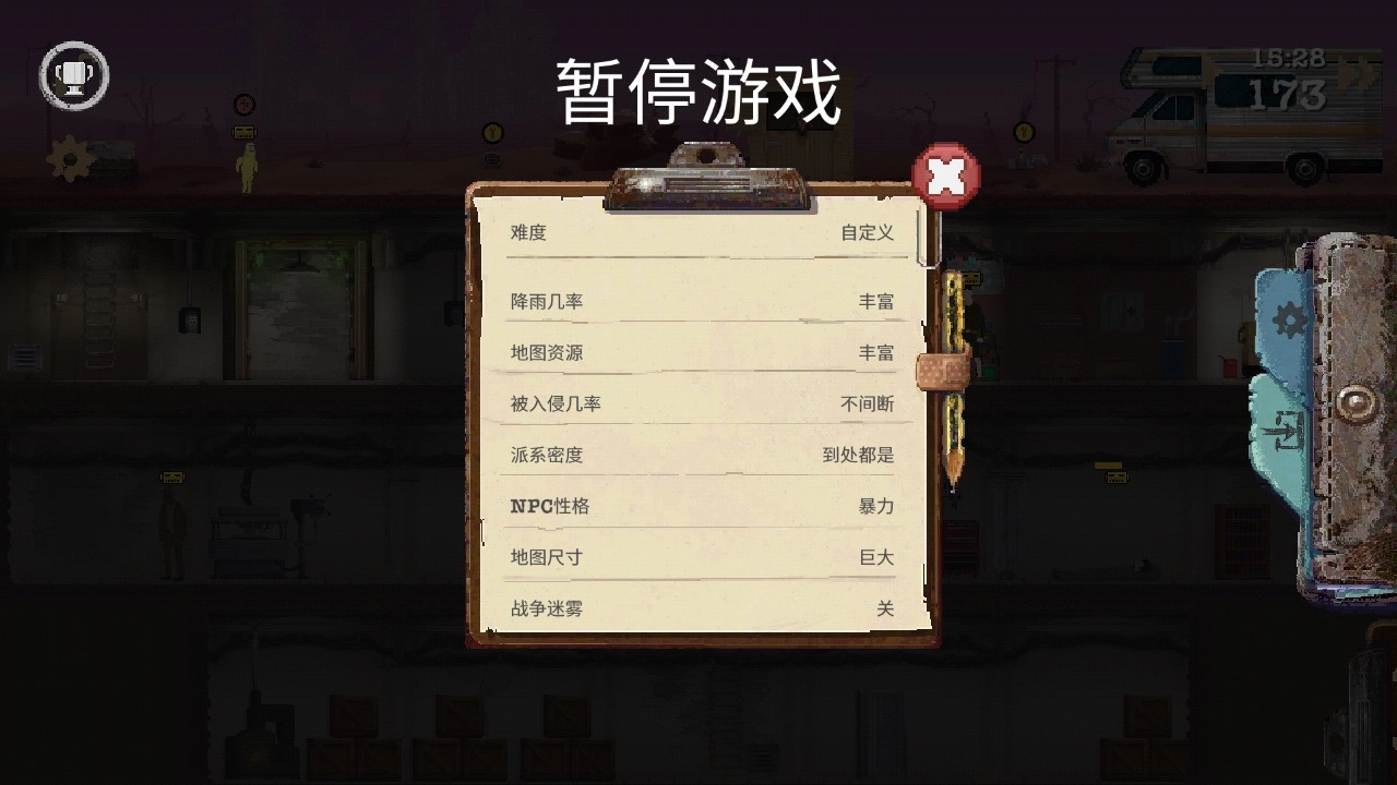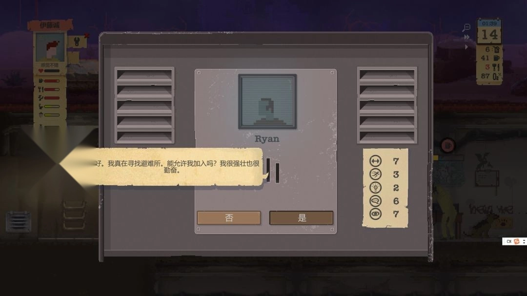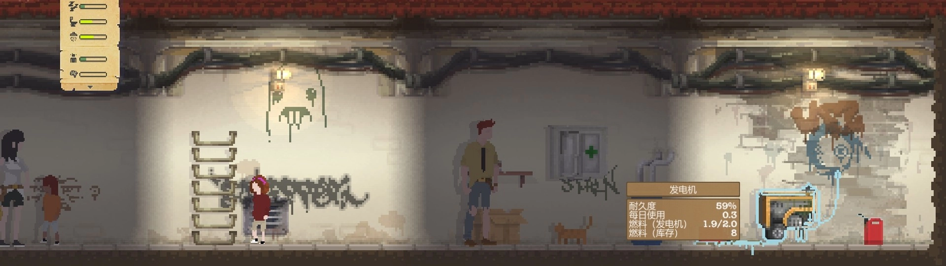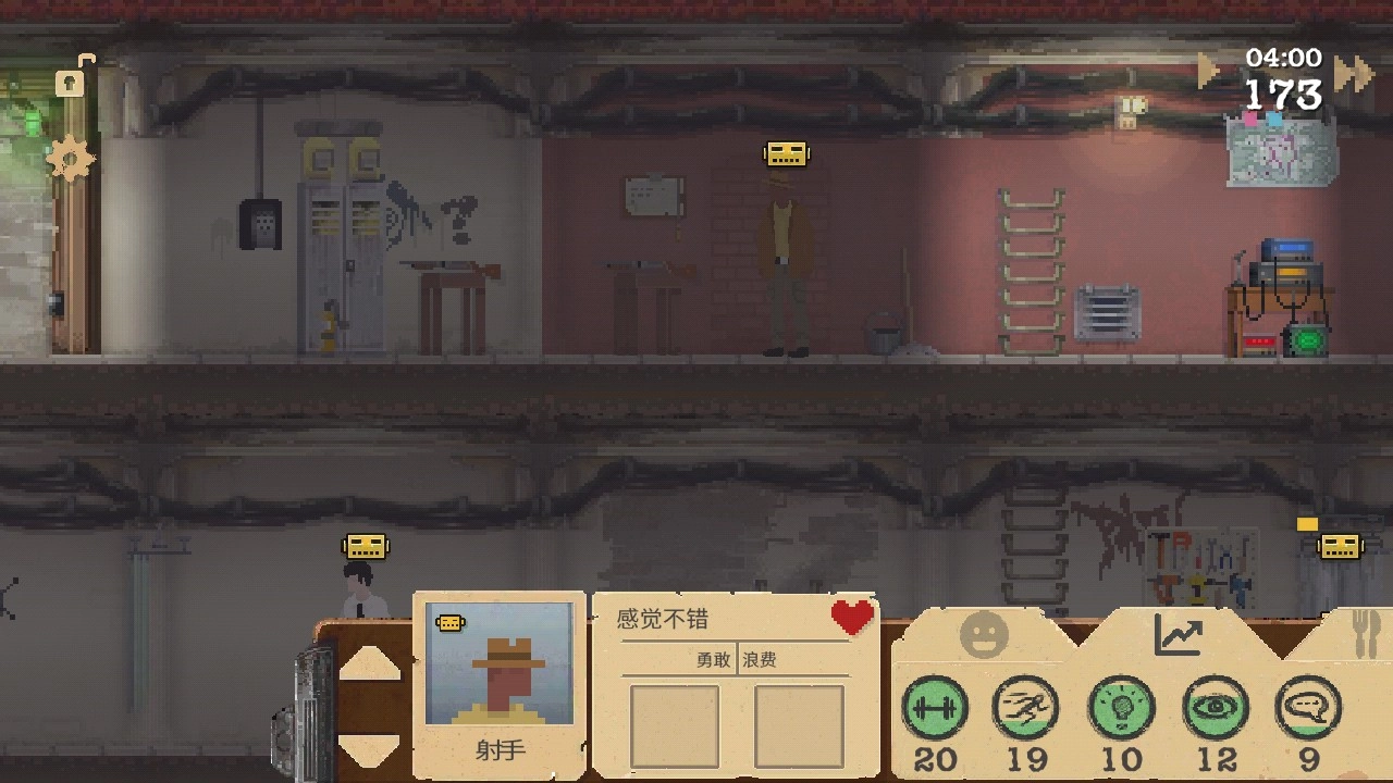 你需要用心经营避难所,保障其安全与舒适,确保家人拥有充足的资源得以生存。此外,你还能够自定义家庭成员的形象,涵盖性别、名字以及外观等方面。随着家庭的不断发展,他们的状态也会相应演变,属性、优势与劣势皆会因你的选择而发生改变。游戏初始的家庭设定如下:家中大人具备两项带有暴力倾向的天赋——勇气;小孩的属性分别为一个富有教养、一个学富五车,还有一个节俭、一个亲力亲为。