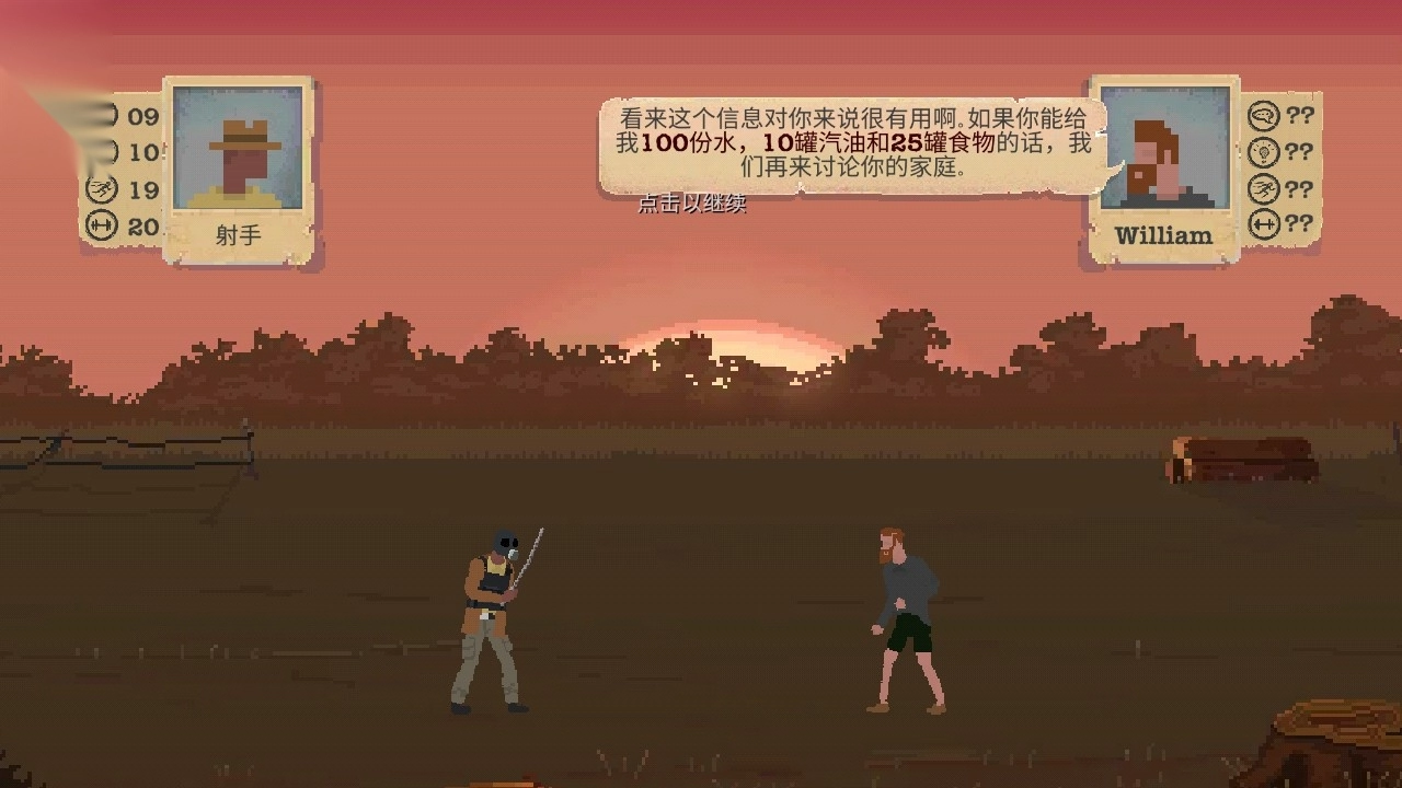 掠夺者(不太建议挑战):务必穿戴防弹衣,并携带钢筋。掠夺者有的手持斧头,有的手持钢筋,要是没穿防弹衣,必定会有一人丧命。击败掠夺者后,会掉落斧头和钢筋。