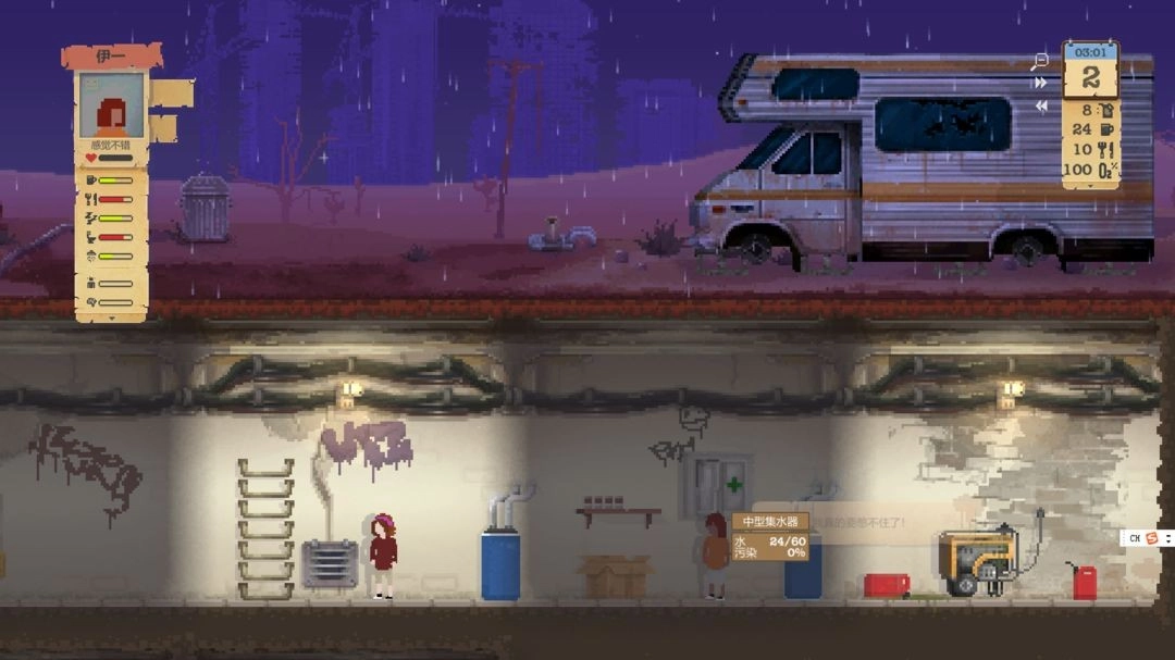好在庇护所里设有工作台,柳如烟能够亲自动手制造所有必需物品。这狭小的空间致使家人们行动颇为不便,所以我们得挖掘出更大的空间,用来安置新搭建的集水箱、淋浴间、马桶等各类有助于我们更好生存下去的物件!