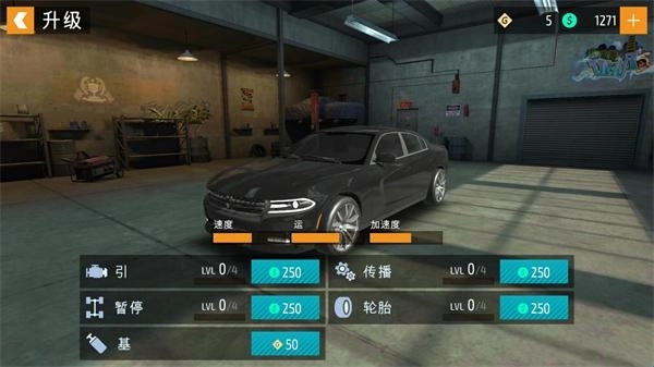 8. 在车库界面,点击“升级”选项,即可提升车辆的配件等级,使你的赛车跑得更快。
