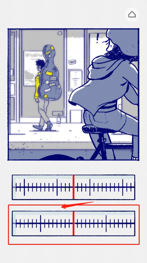 2、故事起始,小女孩察觉到后方有车驶来,此时画面颇为模糊。我们需将上方的刻度往右滑动,一直滑到肉眼看上去最为清晰的位置,通常这个位置对应的是刻度中最长的那根线,或者是中间的那根线。接着,把下方的刻度尺往左滑动,待整个画面变得高清后,便会进入下一个画面。