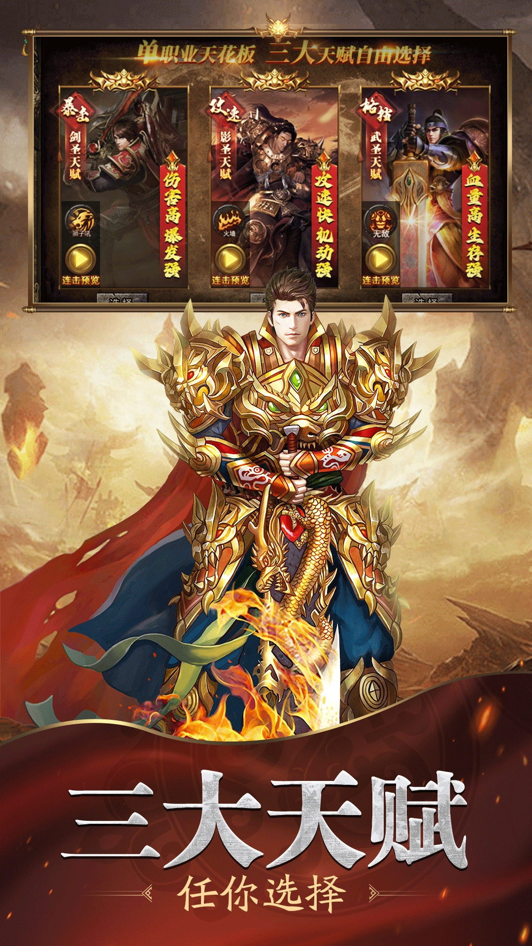 玩家可从三大截然不同的角色天赋中自由挑选,后期借助转职途径,提升战斗力。