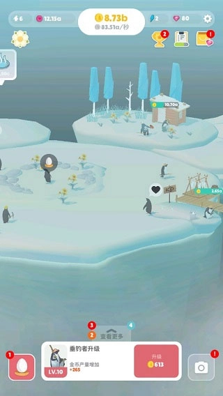 3、此后,玩家能够通过完成委托任务来提升研究等级,也能通过抽卡解锁新生命体,以此进一步提升产出效率。当这些都做完后,玩家便只能给企鹅们拍拍照、收收爱心,百无聊赖地看看风景,然后下线了。