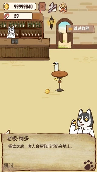 4、只需点击就能获取。若想让酒吧人气更旺、愈发奢华,狗爪币是不可或缺的资源。当下,持续点击宣传按钮便可招揽顾客。