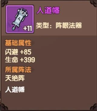 人道幡,作为天绝阵的阵眼法器之一,能够赋予使用者闪避与生命属性。