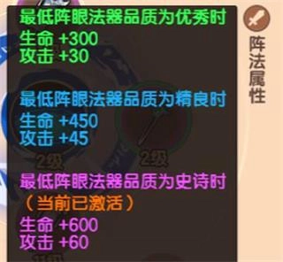 法器激活属性的等级由阵眼的最低品质所决定。
