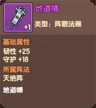 地道幡:作为天绝阵的阵眼法器之一,具备赋予韧性与守护属性的作用。