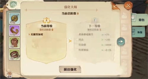1第一步,打开森之国度角色的背包,此时角色的装备栏会一同展现。接着,在装备栏里挑选你想强化的装备,选中后会出现相关信息和操作选项,点击“强化”,即可进入下一步。