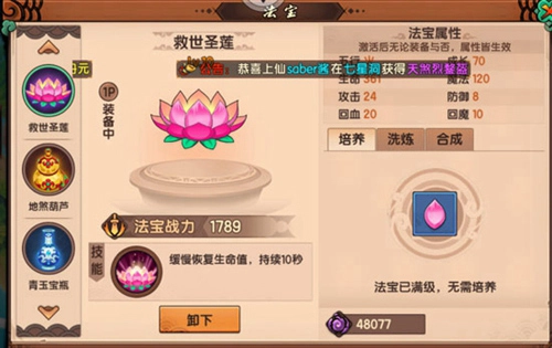 总体而言,主要培养古剑、莲花、瓶子这三个法宝,它们颇具用处。