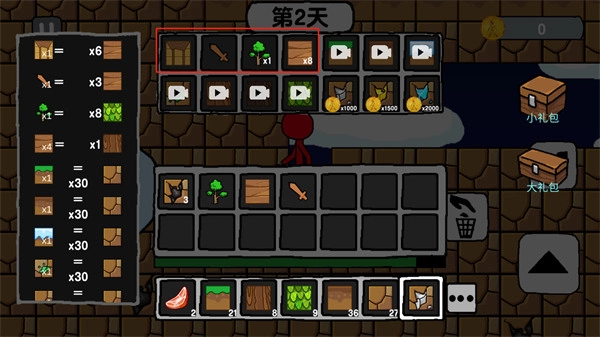 6、在游戏里,上方的方框所展示的是能够制作的道具,下方则为玩家的背包。