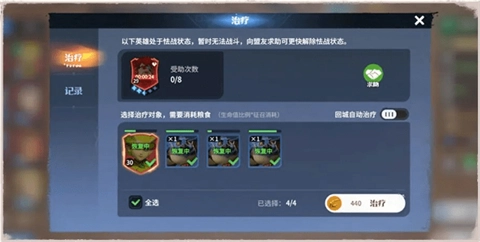 5、若英雄生命值降至0,可返回驻点进行复活。不过,复活后英雄会进入怯战状态。在怯战状态期间,无法派遣该英雄出征。只有在脱离怯战状态后,才能对其进行治疗。