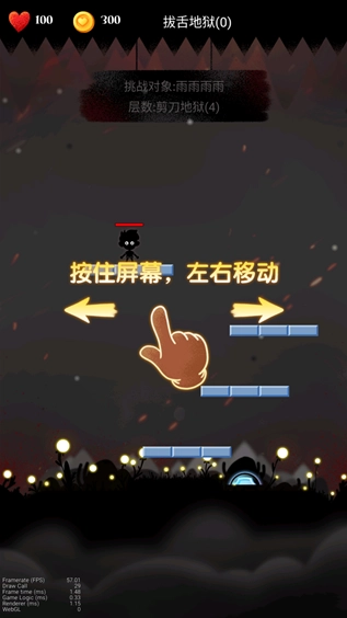 《挑战地狱》是一款颇具趣味的跳跃闯关游戏。在游戏里,玩家会置身于地狱场景开启挑战。仅需通过指尖滑动,就能轻松操控小人。玩家需谨慎行动,在形形色色的平台间跳跃穿梭。沿途还能获取各式各样的道具与奖励,然而一旦不慎掉落,便宣告挑战失败。