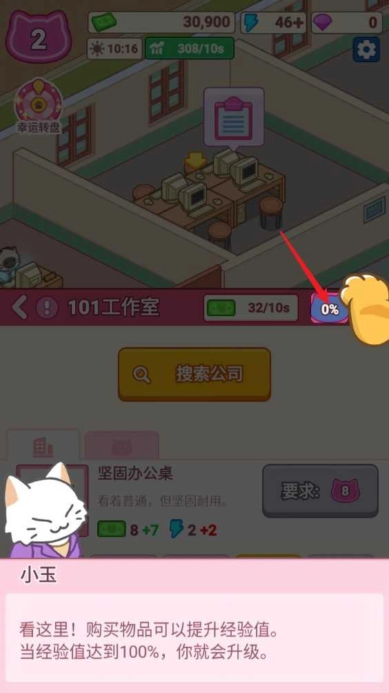 2、注意啦!购买物品能够增加经验值,一旦经验值达到100%,你便会升级。