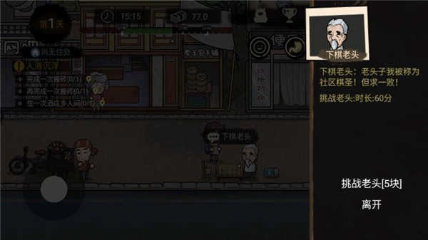 2、诚然,打工干活虽说辛苦,但游戏丰富多样的玩法模式会增强整体的趣味性。玩家既能够在公园和老人切磋棋艺,也能和路人互动引发随机事件。