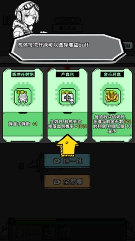 2、每次进行升级,你都能从不同增益buff中挑选,助力战机变得更为强大。