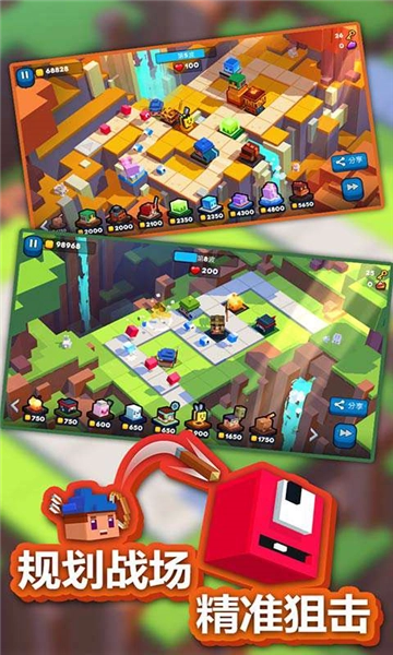 1. 游戏画面极为清晰,无论是敌人还是塔防单位,皆以方块的形态呈现。