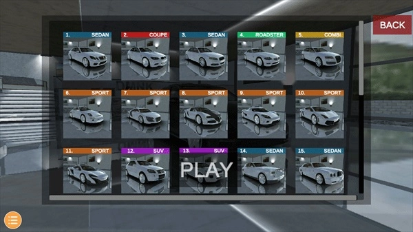 2、轻点左上角的Car selection,就能挑选心仪的车辆。