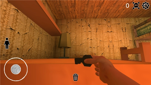 5、进入游戏后,玩家身处一个房间内,需要躲避爷爷奶奶并逃离该房间。操作方式为:左手控制角色移动,右手滑动屏幕来调整视角。