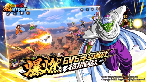 3、热血激战,酷炫技能:战斗之时,绚丽技能搭配精妙设计的镜头,使得每场对决都极具视觉震撼。6V6空中对战模式下,可尽情释放如龟派气功这般的专属必杀技能,畅享每一回激情碰撞的快感!