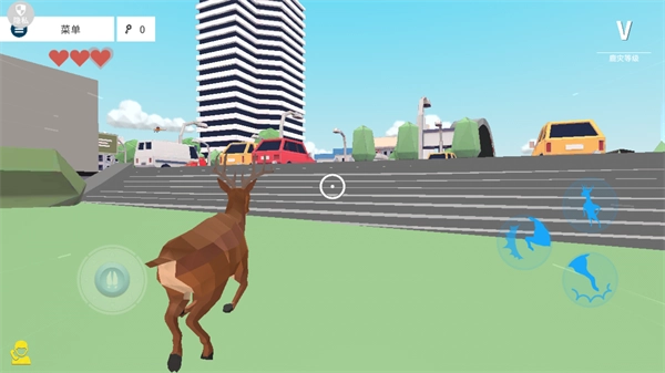 2、操控你的小鹿,开启一段趣味十足的城市冒险之旅,把所有房屋统统摧毁,以此提升你的能力。