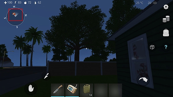 1、第一步,你能够查看自己的领地,以便建造一间屋子,你得依据指南针给出的提示去找到这块适合建造的地方。