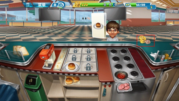 6、此时,你能够利用营业所得金币来升级厨具、食物以及饮料。随着经营推进,后续还会解锁新物品,要记得积攒金币用于购买。