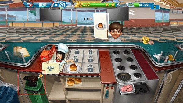 3、要是你制作的牛排烤焦了,点击牛排,然后把它移到垃圾桶里。记得要完成关卡开头给到你的目标指数,如此便能达成今日的业绩要求。