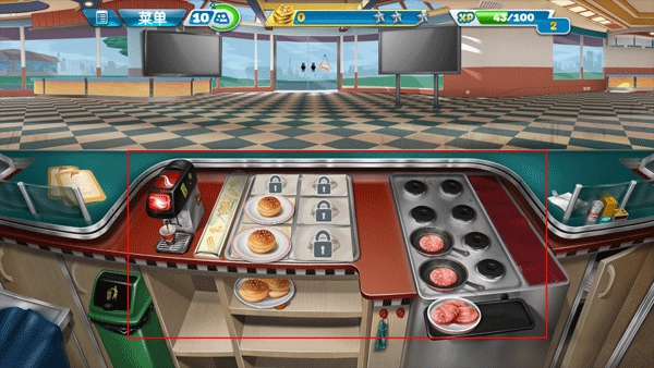 1. 在本站下载并安装烹饪发烧友游戏,安装完成后打开游戏进入关卡。按照客人的口味偏好,挑选汉堡包,接着把牛排放置到汉堡包之中,完成制作后将食物递送给顾客。