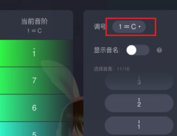 选完调号后,我们还需从1 - 7中查看你简谱里包含哪些数字。有的话就勾选上,通常情况下,要特别留意有没有4和7,有的话就点亮。