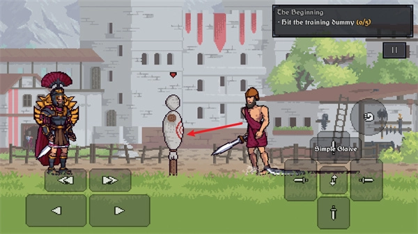 6、轻点屏幕右下角的各个攻击按键,对眼前的稻草人展开攻击。
