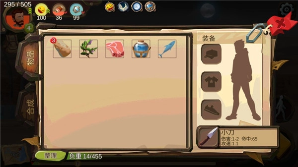 6、推荐制造短锯、猎刀这类敏捷型武器,它们伤害较高,制作难度也不大。