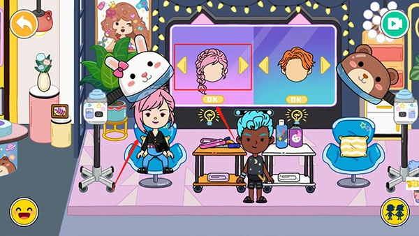 7、针对前来设计发型的顾客,为其定制发型,把角色拖拽至椅子上。