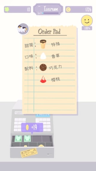 6、点击顾客的手部,把制作完成的冰淇淋递给顾客。