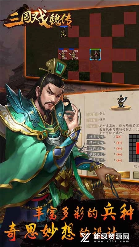 三国戏魏传正版,这是一款依据三国历史精心改编的策略战棋类游戏。其剧情紧紧围绕着枭雄曹操的一生来铺陈,从曹操的视角出发,为玩家开启一段别具一格的三国故事篇章。游戏玩法独特新颖,充满挑战性,在兵种搭配上,玩家可依据兵种相克原理自由组合。喜爱此类游戏的玩家,欢迎前来亲身体验一番。