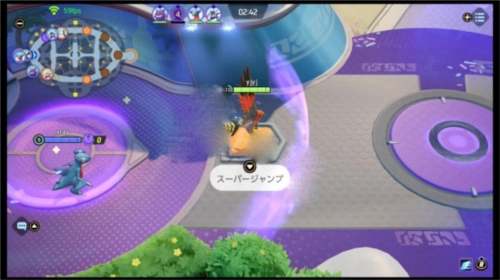 在地图中央的野区附近,分布着四个小型跳板,借助它们能够翻越墙壁。当对局推进到后半程,基地内会出现大型跳板,站到跳板上后,按下↓键,就能选择外围的得分点作为降落地点。另外,宝可梦落地时会产生一个短暂的范围击飞效果。